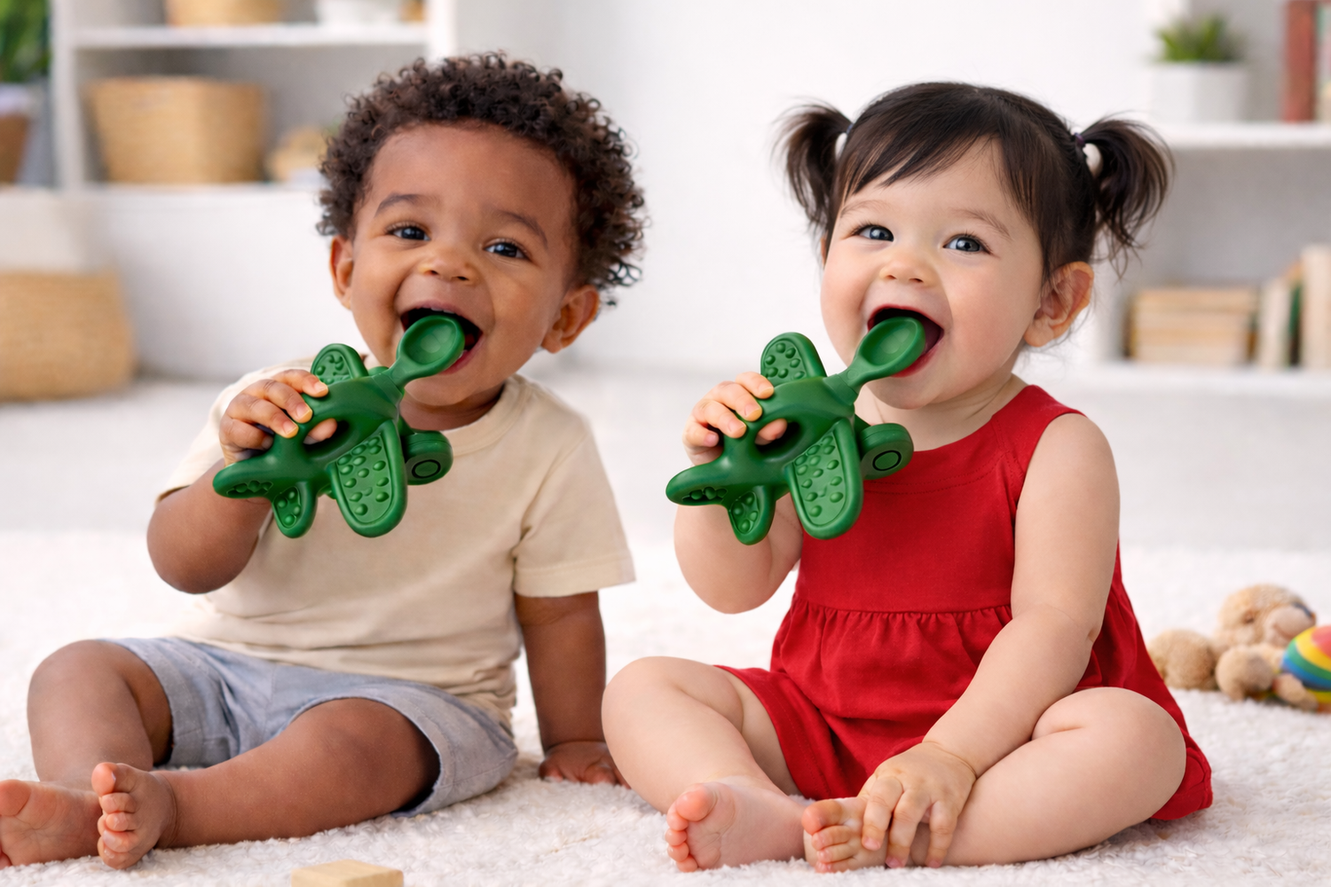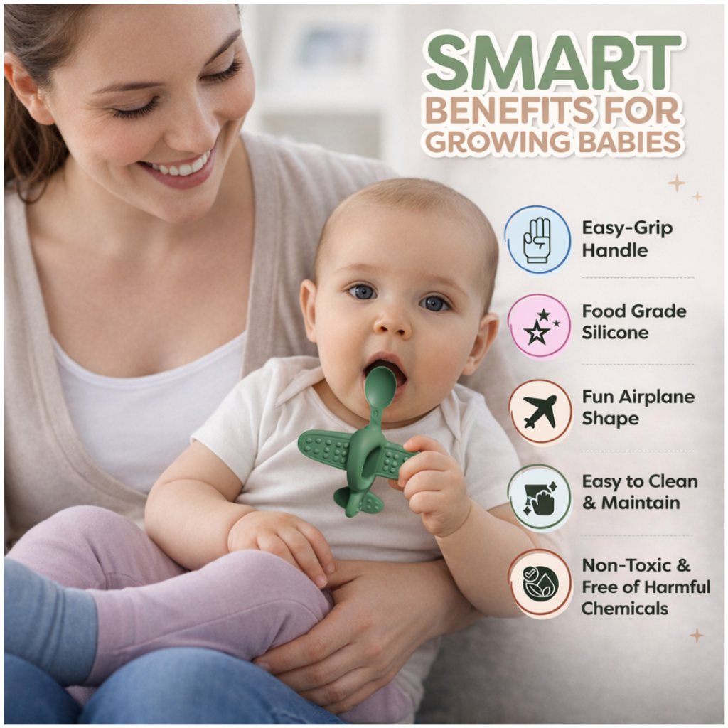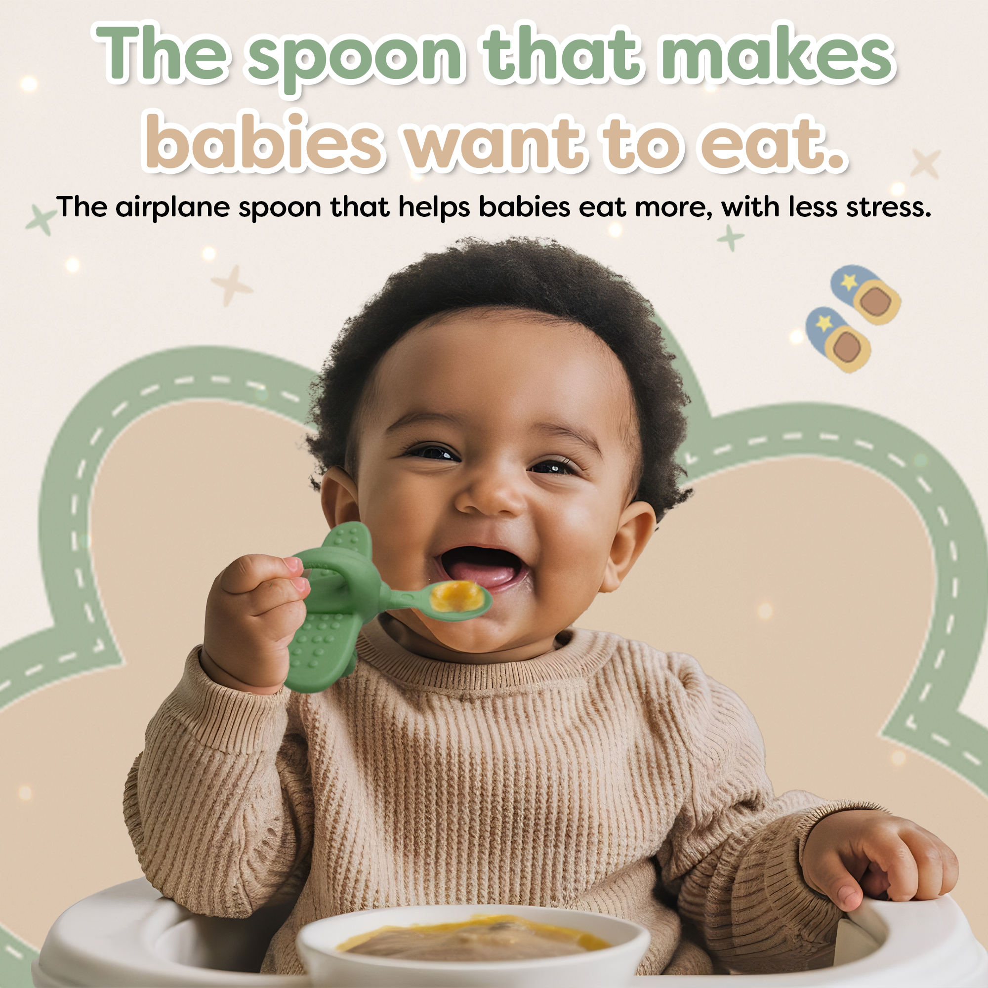 SkyBite was created to make those everyday moments easier for both babies and parents. Designed with safety, comfort, and simplicity in mind, our airplane-shaped spoon supports self-feeding while soothing tender gums.